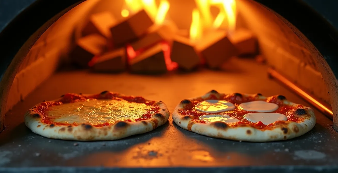 Une fois la Bufala correctement préparée, la question du timing se pose : faut-il l’enfourner avec la pizza ou l’ajouter à la sortie du four ? La réponse dépend entièrement de votre outil de travail principal : la température de votre four. Il n’y a pas de règle absolue, seulement des choix logiques dictés par la physique de la cuisson. Plus la cuisson est longue et « douce » (en dessous de 300°C), plus le fromage a le temps de fondre, de gratiner, mais aussi de potentiellement libérer son humidité résiduelle. Plus la cuisson est courte et intense (au-dessus de 400°C), moins le fromage est exposé à la chaleur.